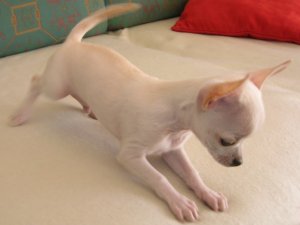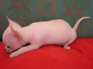 LITCHI : poids de naissance 115g. Il devrait peser à l'age adulte environ 1,8-1,9 kg. Ce bébé chihuahua est élevé en famille, avec enfant. Il est très sociable, joueur et adore les câlins.